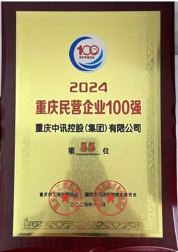重慶中訊控股(集團(tuán))有限公司再次榮膺“2024重慶民營企業(yè)100強(qiáng)”稱號,名列民企100強(qiáng)55位!