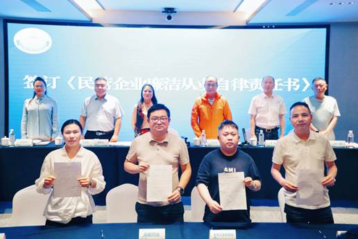 會議傳達學習習近平總書記在民營企業(yè)座談會上重要講話精神,審議通過了相關人事任免事項,總結(jié)了全區(qū)清廉民企、清廉商會建設階段成效,同時與會企業(yè)簽訂《廉潔從業(yè)自律承諾書》。